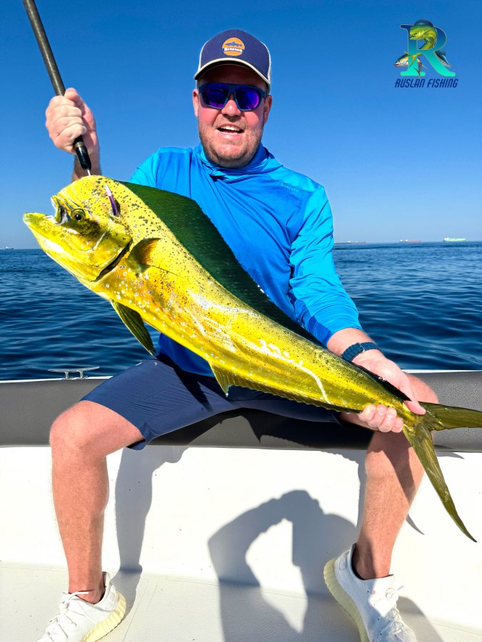 Стереотип «утро/вечер» зимой не работает. По факту в Фуджейре рыба ест с 10 до 16, когда поверхность прогрета, махи поднимается наверх и охотится. Мы попали ровно в окно: первая точка сразу показала правильное время, дальше ловили и кайфовали.