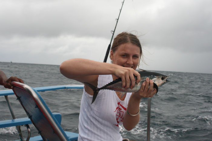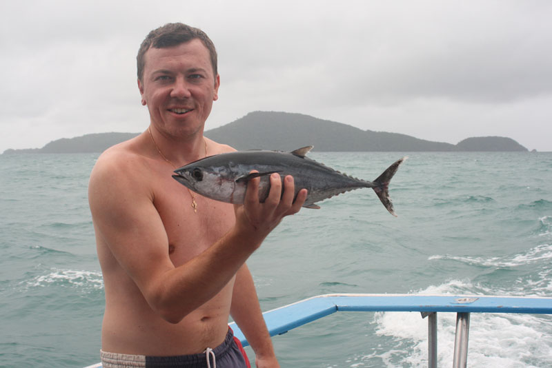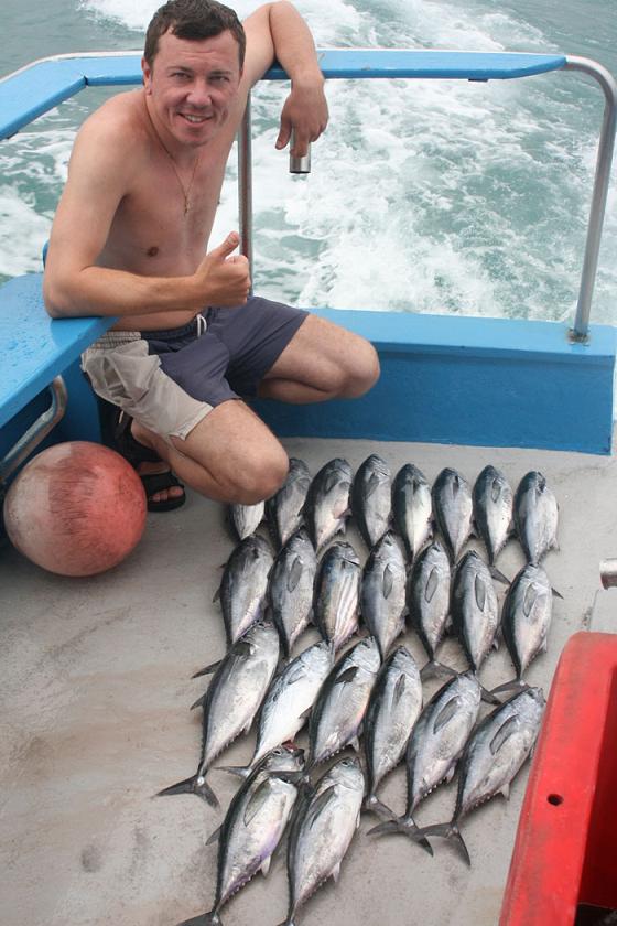 Ездили с женой, погода вертела как хотела. Волны, дождь, ветер, но работали поверхностники и терпение. Итог - семь тунцов, для шторма нормально, морская рыбалка в Таиланде не подвела.