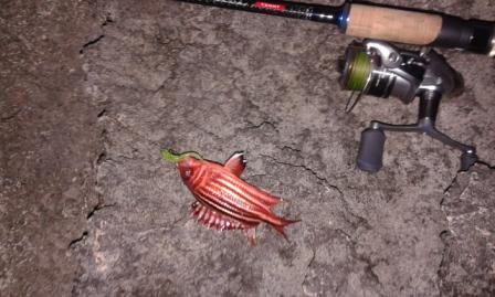Днём жарко, ночью пусто без светящихся приманок. Лучшее — бомбарда и отводной: вязка с «палочкой/бананом» 8-12 г, бомбарды 5-10 г. Палка до 12 г была бы идеальной, ловил Апией до 18 г из-за ветра. Рабочая резина: Aiko Fat Booty 40 мм 006/011, Xesta, TICT. Воблеры и пилькеры не зашли, SP в солёной воде стали суспендерами. Камни острые, нужны кроссовки и перчатки, губы сохнут — крем. Маска помогает выручать приманки. Рыба в основном до 150 г, но рыбалка стабильная.