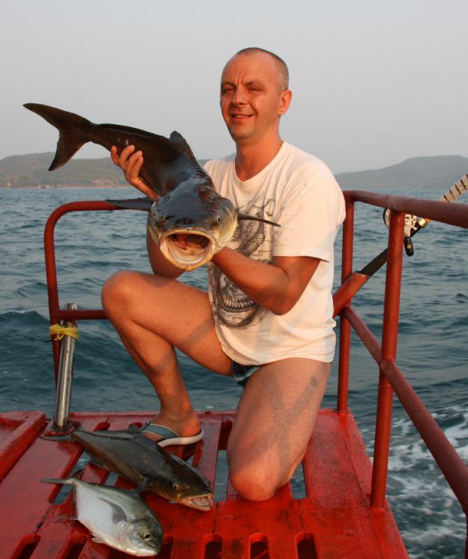 Обещанные кадры с кобией с трёх последних покатушек. Днём уже печка, Новый год близко, так что ближайшие пару месяцев комфортнее ночью - морская рыбалка в Таиланде в тёмное время и ловит стабильней.