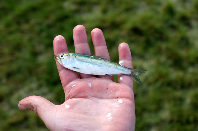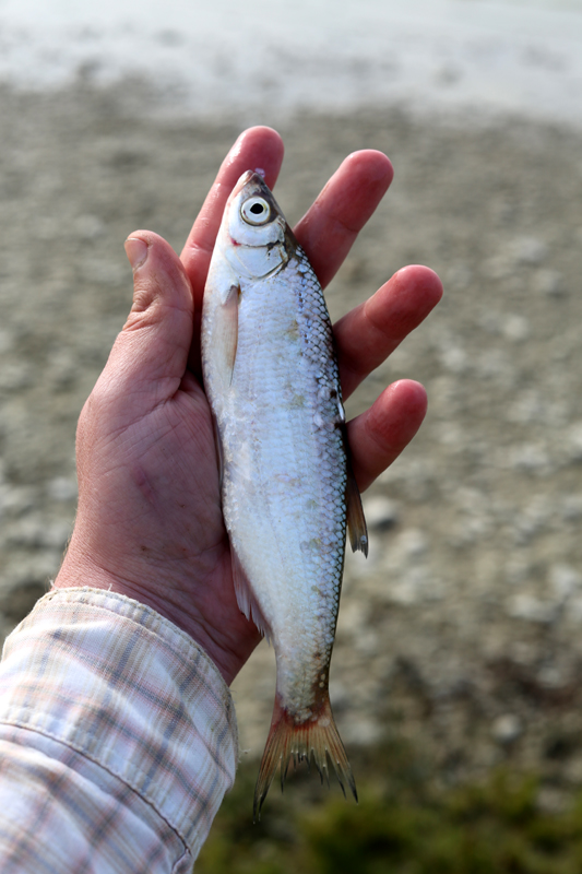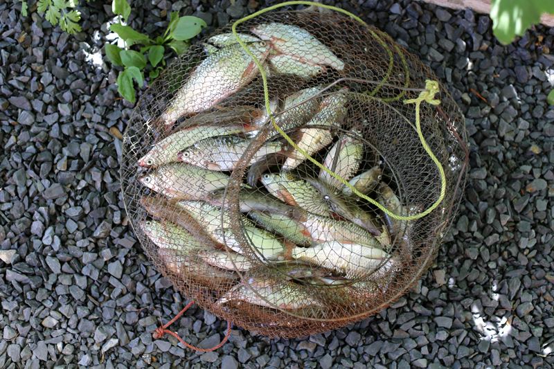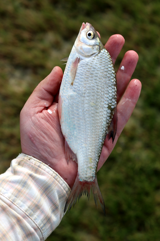Отошли на километр, глубина около 1.8. Прикорм хлебом и перловкой, ловили на червя, опарыша и ту же крупу. Поклёвки осторожные, тюк-тюк и тишина, много сходов. В улове тарань, бычок, сход пеленгаса около 200, в конце опознали шемаю и селёдку пузанка.