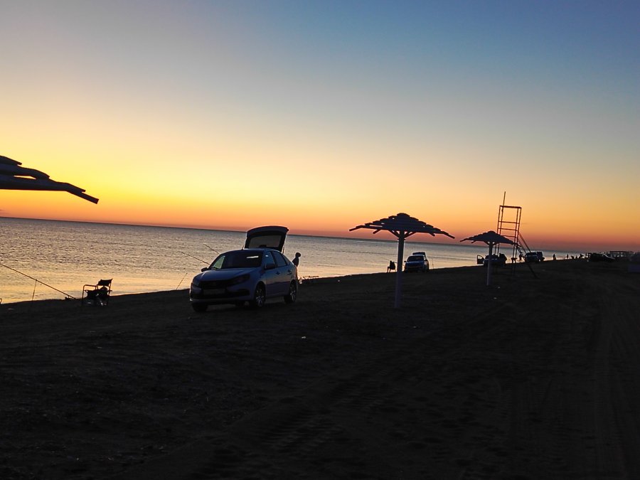 Мидии под песком на Азовском море, вечер у плиты