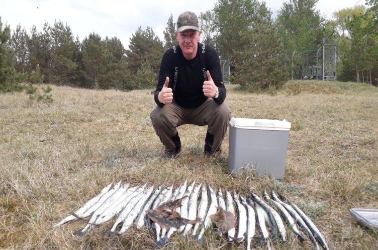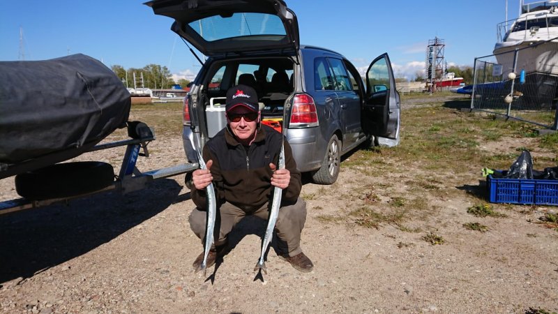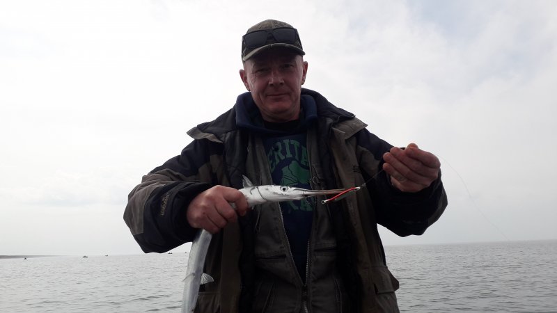 На поверхности «молнии» за блесной, парами и поодиночке, но к железу капризничал. Сегодня выручил тандем креветка+поплавок. Взял с собой коллегу — у него первый в жизни сарган, эмоции через край. С почином, Женя!