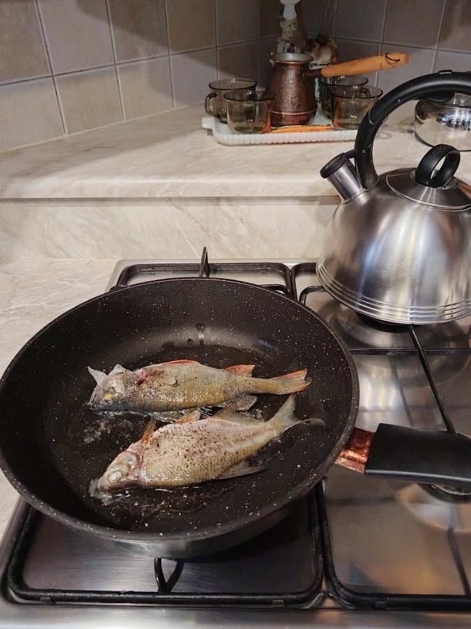 Глубина около 4 м, опарыш. Шли окунь, плотва, густера, вкраплялись рыбки за 100 г, сверху уклейка бликовала. По часу не скучно, морская рыбалка тут вполне камерная.