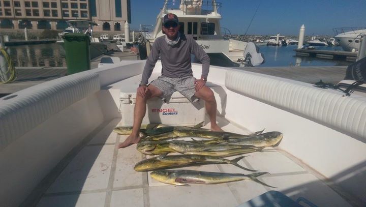 Утром взяли пять махи и туну 10-12, потом заметил «парус» и ушли в троллинг с осьминогом и «обвязкой» из живота махи. Через 40 минут атака, свечи, прыжки, кайф. На обратном пути ещё несколько махи и домой. Морская рыбалка в заливе умеет так дарить день.