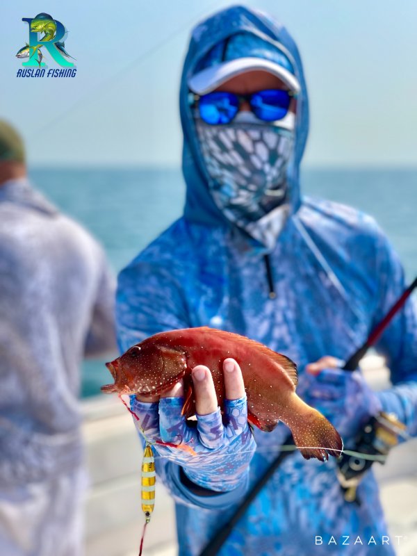 Не жарко — редкость для лета. Много мелкой барракуды до килограмма, отпускали. Работали локальные точки с перепадами на 14–20 м, по классике пилкеры 30–50 г. Команда из Украины справилась отлично.