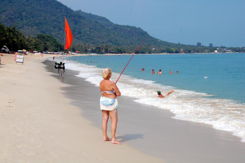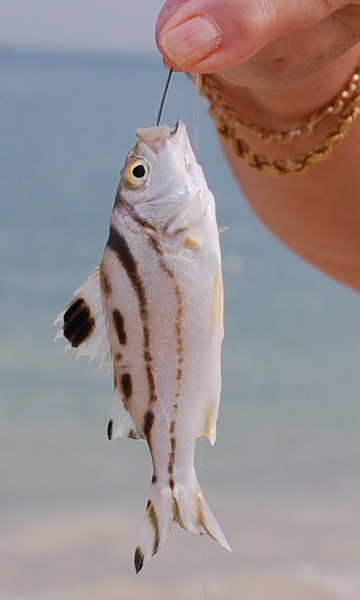 Если жена далеко не отпускает, можно и на пляже место найти потише - мальков на креветку потаскать. Одна англичанка клялась, что иногда влетает что покрупнее, но очень редко. На севере Патонга, напротив ручья, местные неводом вытаскивали здоровенную колючую несъедобную - потом палкой обратно в море закатили. Берите рыбу через полотенце - безопаснее.