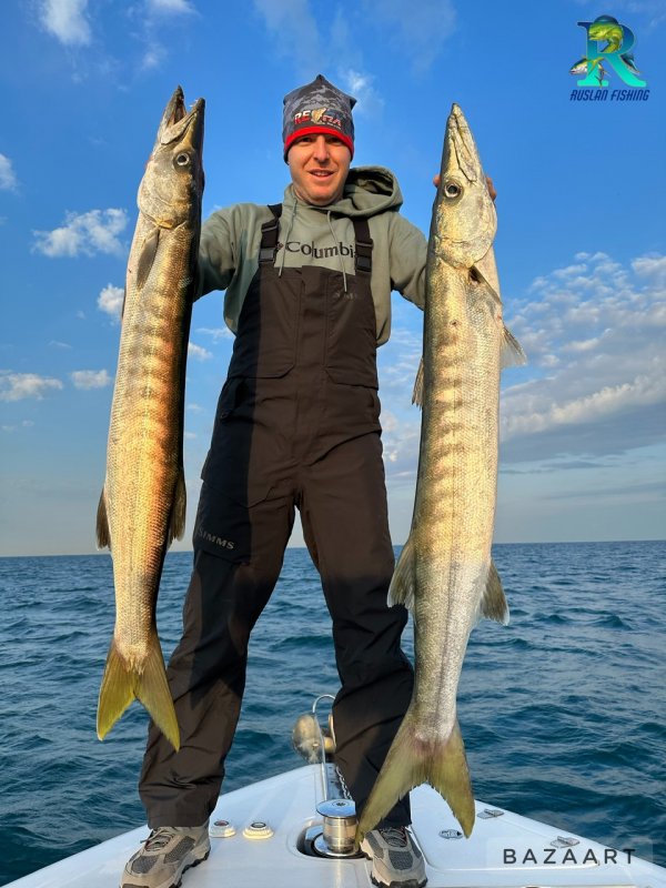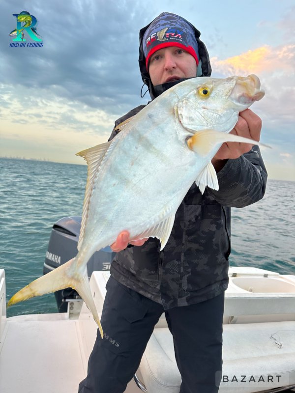 Вчера все твердили «дождь», а утром звёзды и тишина. За первые два часа три баракуды 8–12 кг, три Хамура, Golden Trevally и каракатица, которая «чернилами» окатила лодку во время фото. Морская рыбалка в Дубае любит такие окна!