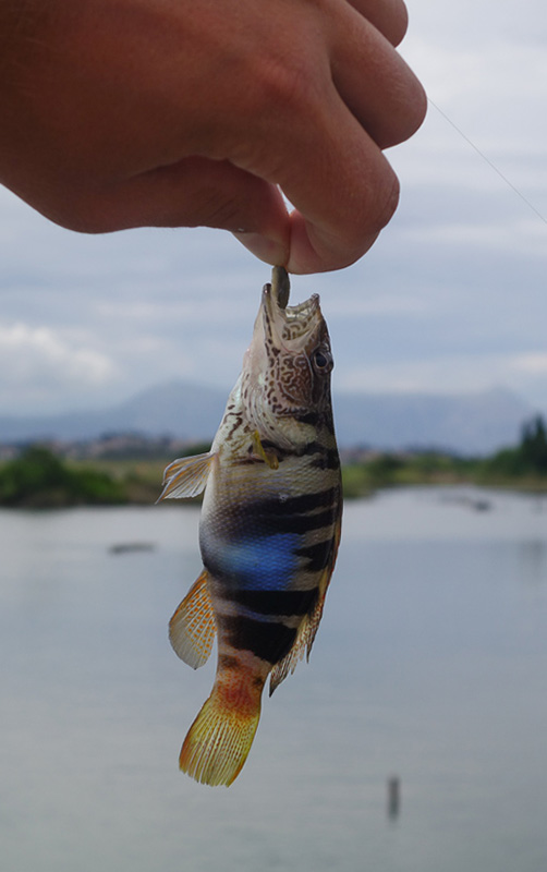 С поплавком клюёт на хлеб и улиток, самые злые поклёвки на мясо мелкой рыбки. Дальше — отводной и Orka 1.5", догруз дробиной 0.4 г, крючки мельче. Ночью зашли бычок-кругляк и кефаль на Tioga ~2.7", на прощание — морской петух. Самолёты над головой сдували шапку, но рыбалка держала ритм.