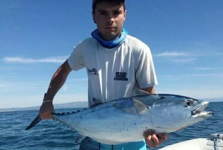 Групповые выезды обычно по 75–100 € с человека, форматы разные: троллинг или донка в отвес. Сейчас в дельте Эбро идёт крупный тунец и помельче тунцовые — бакореты и бонито. Про «развод» всё решает конкретная фирма и капитан.