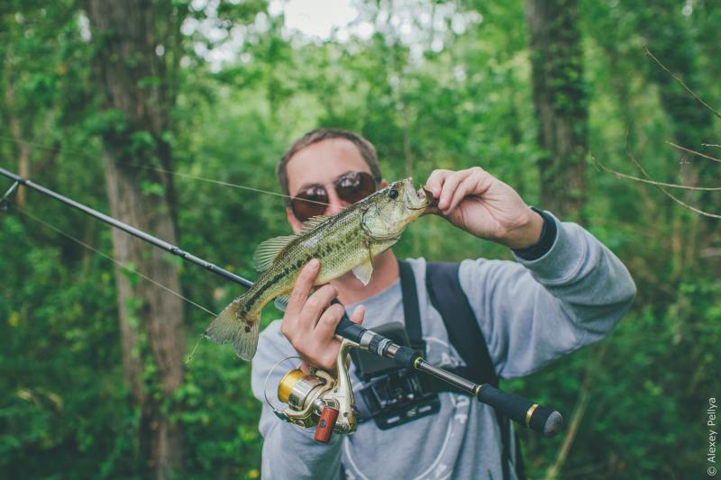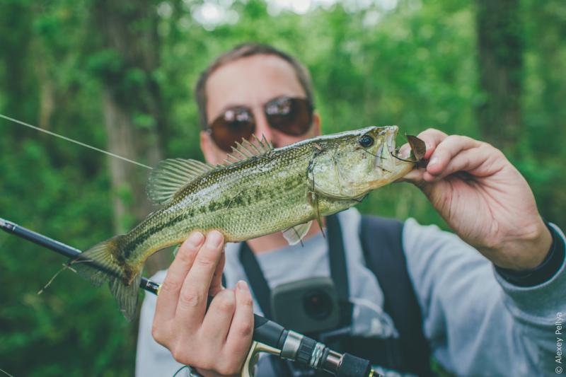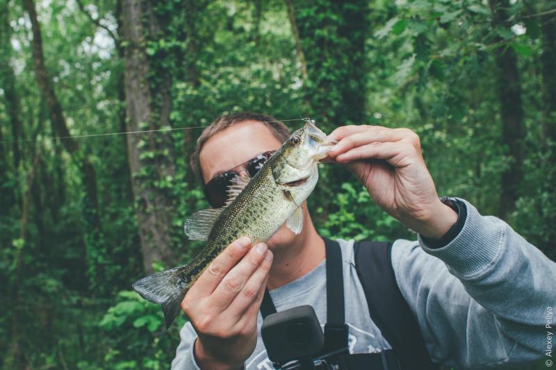 Вернулся на озеро через несколько дней. Сначала проверил старые места, глухо. Дальше пошли новые точки: коряги, канавы, трава. Поймал штук 35–40, лучше всего работала неогруженная резина и тиога с головой 1.5 г. Дважды видел басса около 1.5, но соблазнить не смог. День закрыл с улыбкой, вид рыбы зацепил реально.