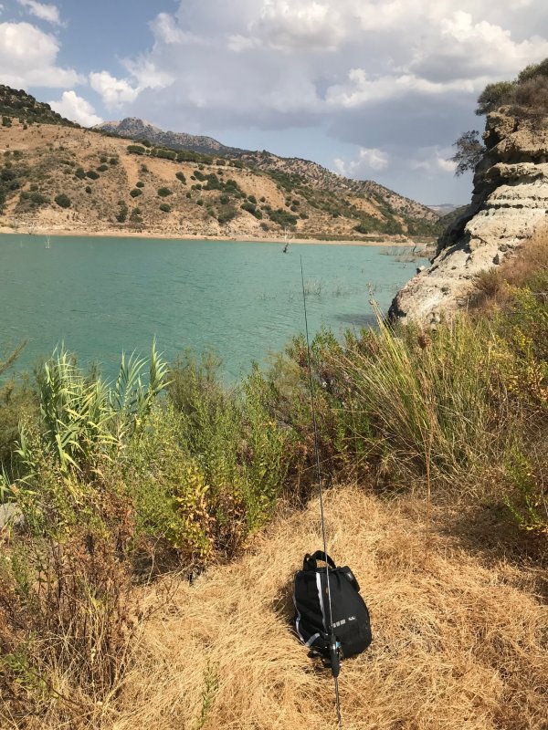 Днём заехали в город на горе и случайно увидел, как под берегом бас гоняет уклейку. Спуск к воде оказался коварный: глина засасывает по щиколотку, пройти можно только пятнами. Снёс вниз один дешёвый блесён с безбородым крючком, чтоб не жалко. На третьем забросе сел бас около 1.5, на следующей серии ещё один таким же и потом около 2. Пока отпускал, едва не рухнул в воду и измазал снасти по уши. Жара под 38, вода тёплая, место пустынное. Сверху жена делает вид, что мы туристы, а я внизу отмываю катушку и палку. Сандалии расплавились и прилипли к ногам, полчаса потом отмывал в туалете на парковке. Этот эпизод про Андалусию запомню надолго.