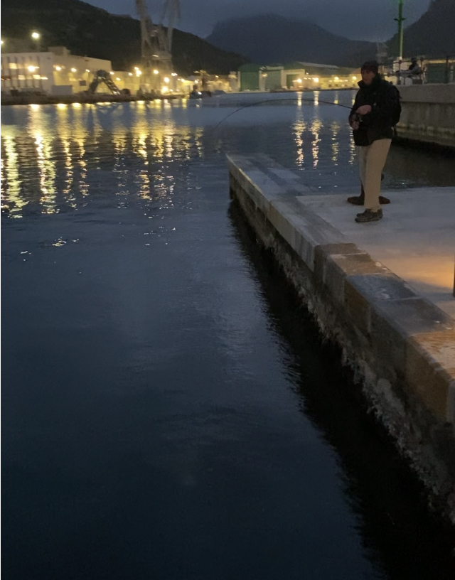 Пять дней, только вечера: оформил лицензию онлайн за 11,15 € на 14 дней (через каталонский язык перевод понятнее). Портовой микроджиг — несколько скорпенок, один раз прошёл лаврак, видел всплески тунцовых подальше. Местные ловили у стенки на хлеб, подтверждали: зимой рыбы мало.