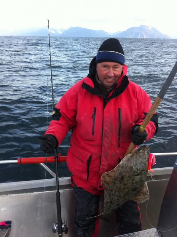 Мелкий палтус клюнул на новинку, проверили реализацию и сняли. Без подробностей, просто зафиксировал момент.