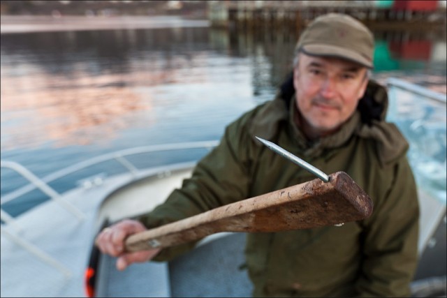 Проще купить местный нож: уверенно пробивает голову зубатки и трески. С палтусом безопаснее работать крюком, похожим на мясницкий. Так рыбалка идёт спокойнее и без травм.
