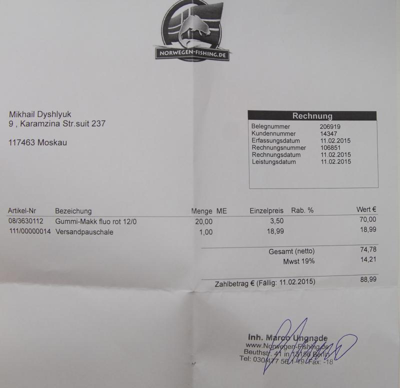 Из десяти поставщиков только один работает с Россией. В накладной налог обозначают, но к оплате идёт полная сумма: товар 70, доставка 18.99, всего 88.99.