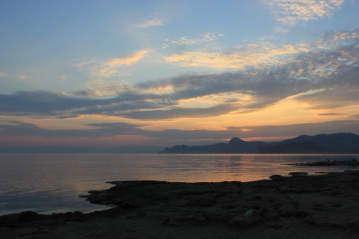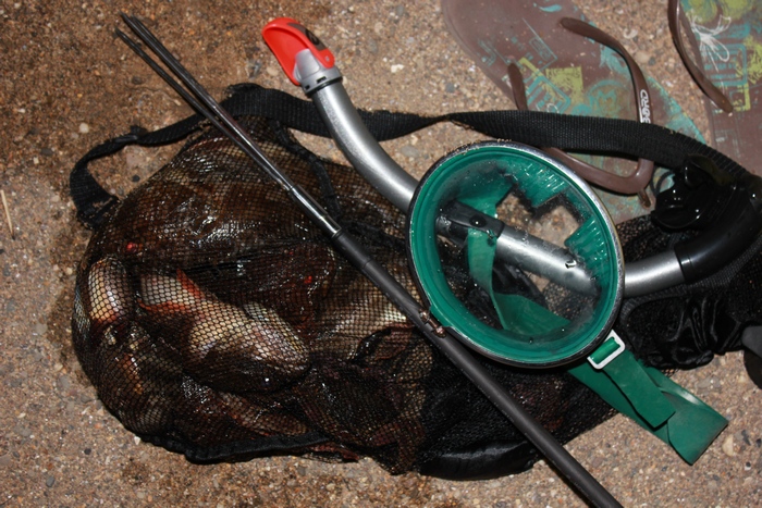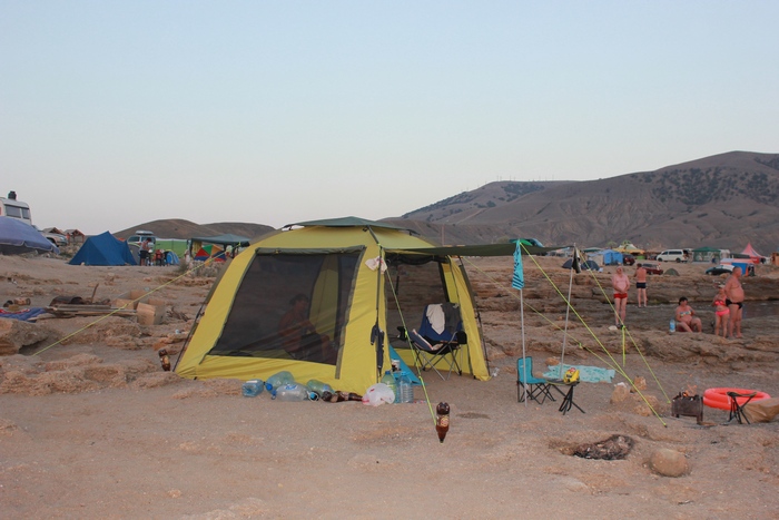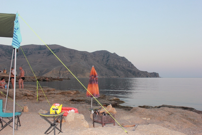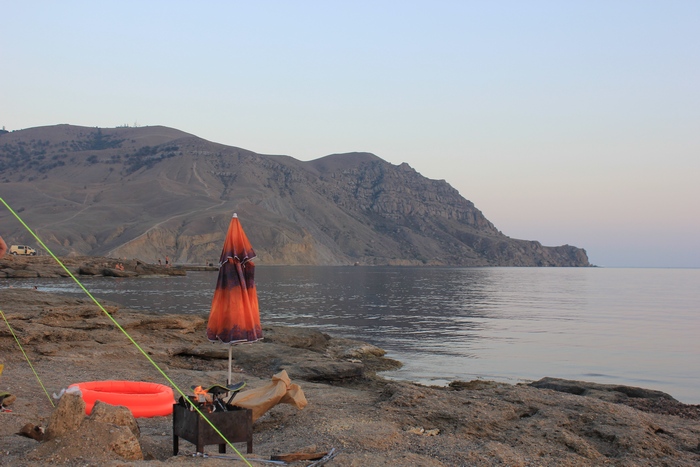 Отдохнули дикарями под Меганомом, палатки, тихо, вода прозрачная. Нанырялся на год вперёд, ночью фонаря не хватало — из расщелин монстрики выглядывают. Гавайкой рыбы на четверых набивалось легко, жарили без муки прямо «в своём соку». Со спином тяжело — трава высокая, камень липкий, поклёвок мало. Сарган только-только пошёл, кефаль слабая, ставридки мало. Дельфины в заливе каждый день — кайф.