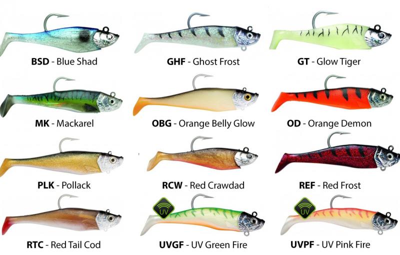Кроме Royber отлично работают Storm WildEye Jig Shad: в наборе голова и три хвоста, есть светонакоп и UV. По статистике палтуса на них взяли больше, чем на Royber; «вьетнамец» по треске и сайде не хуже оригинала. Треска всеядна: ловили даже на гаечный ключ и дверную ручку, телефоны из желудков доставали тоже.