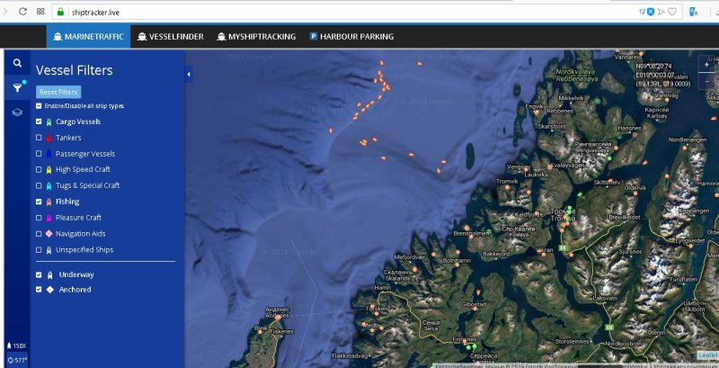 Онлайн карта судов по Норвегии для ориентира по флоту