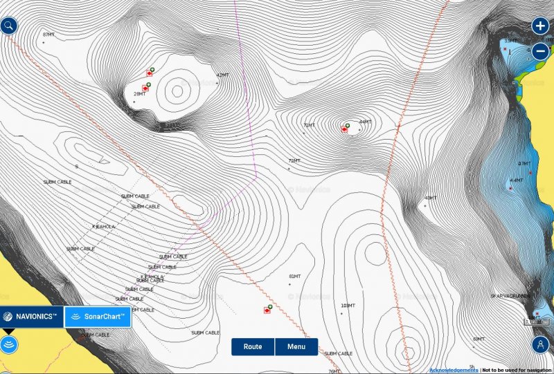 Для Foreneset на карте отмечены места со «значками рыбы», но нужно сильно приблизить масштаб и читаться по рельефу — свалы, полки, входы в бухты. Для старта выбрал бы свал к 40–60 м у выходов, дальше — проверка струи по ветру. Такая рыбалка читается именно по рельефу.