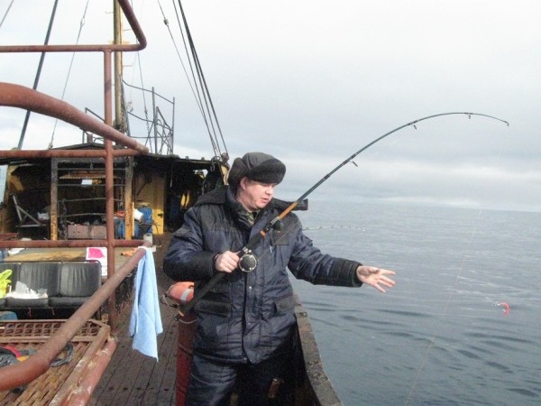 Встали на точку, под нами 130 м. Все торопятся сбросить снасти и, если честно, руки сами тянутся к катушке.