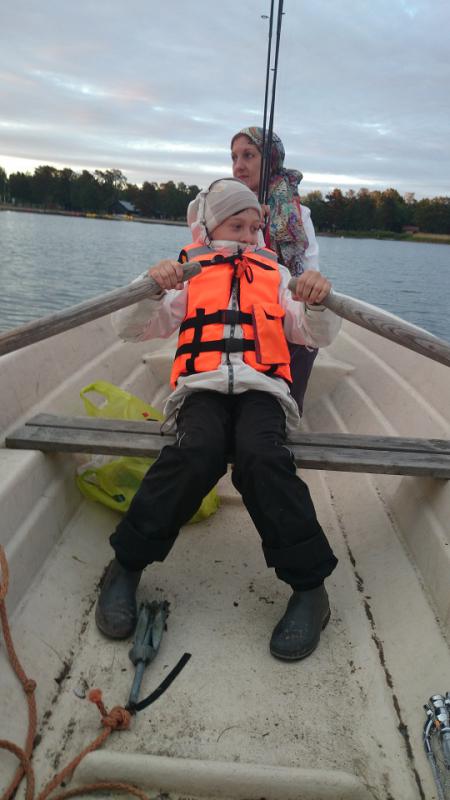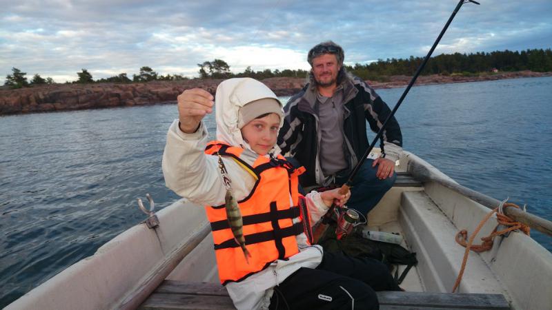 Днём учил ребёнка грести, между делом бросал приманку у травы. Рыбалка без амбиций: один выход у берега и пара осторожных тычков, дальше снова тренировка на вёслах