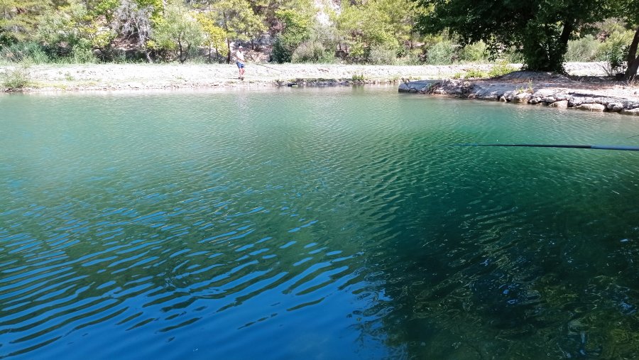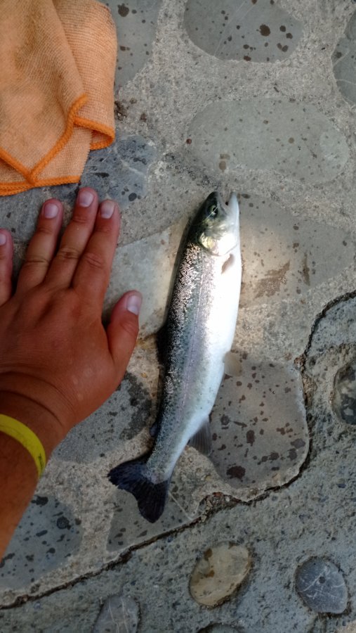Сазан на забродившую кукурузу так и не вышел. Переключился на хлеб с поплавком и потом на бомбарду - четыре форели, ещё одну дала поймать соседка на мой комплект. Ещё видели угря, берёт на мясо. Суп, пара кружек пива - день удался.