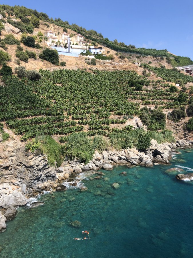Жара, у берега рыбы много, но вся мелкая. Ловил на маленькие форелевые блёсны, обрывы частые: камни, леска оказалась практичнее плетни. На закате у местных на бомбарду шла дорадо грамм на 700. Взяли катер - в основном «баллоны» и мелочь, один мощный сход. Для «серьёзки» нужен авто и курс на Газипашу, там по видам шире и кальмары нормальные. В море обувь обязательна, волна бывает злой. На Дим Чай платник, форель, готовят на месте.