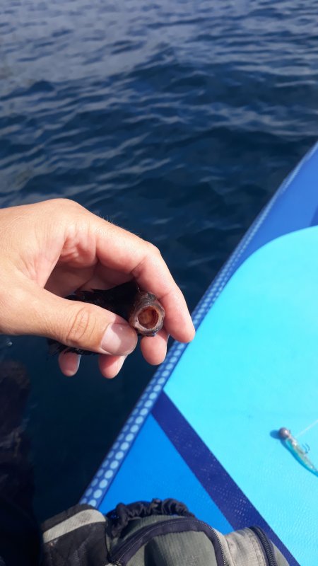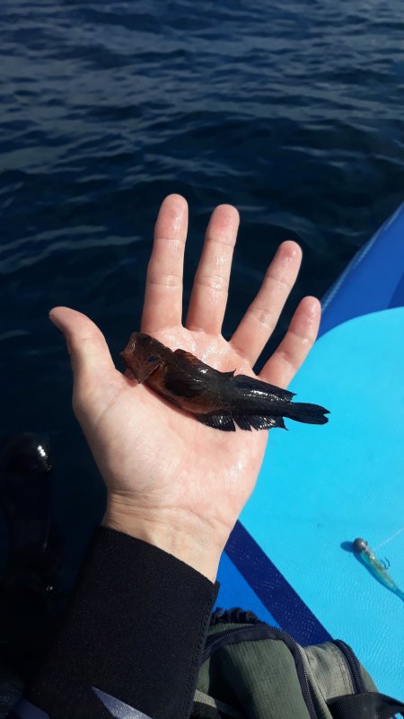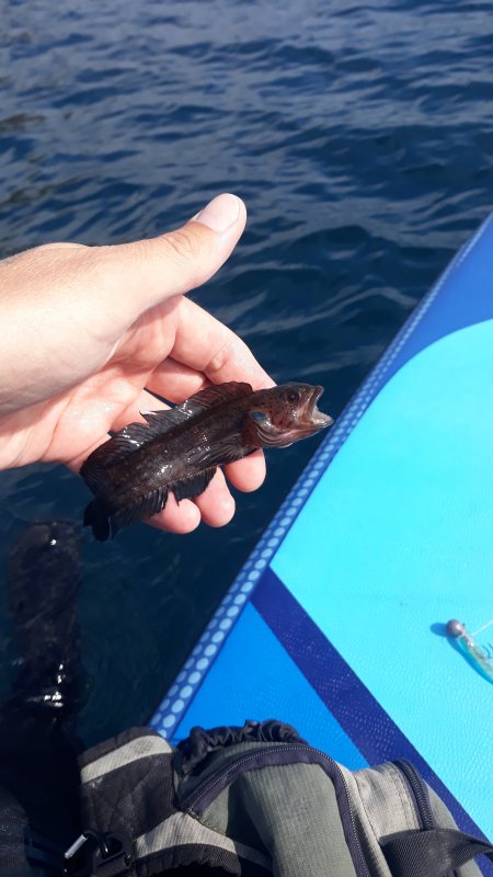 Определили вид как батимастер Дерюгина. Взял на донную под скалой, тянется тяжело для размера. Если кто знает проверенный способ отпутывать его из камней, подскажите