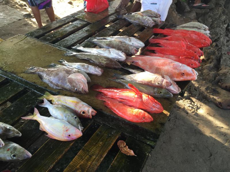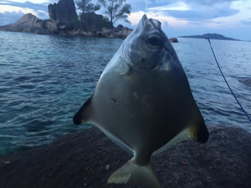 Майские на Сейшелах. Ловил с берега у домика, видов море, названий толком не знаю. Хозяин принёс ред снеппера и сам сделал на гриле, лучший вкус за поездку. Посоветовал насадку из мяса любых рыб и ноги лобстера, и правда клевало на всё. У берега ходит мелочь, пару раз видели акул до метра. Видел как народ на волне «садил» катер. Русских было много. После Мальдив качку больше не ищу, так что формат подошёл отлично