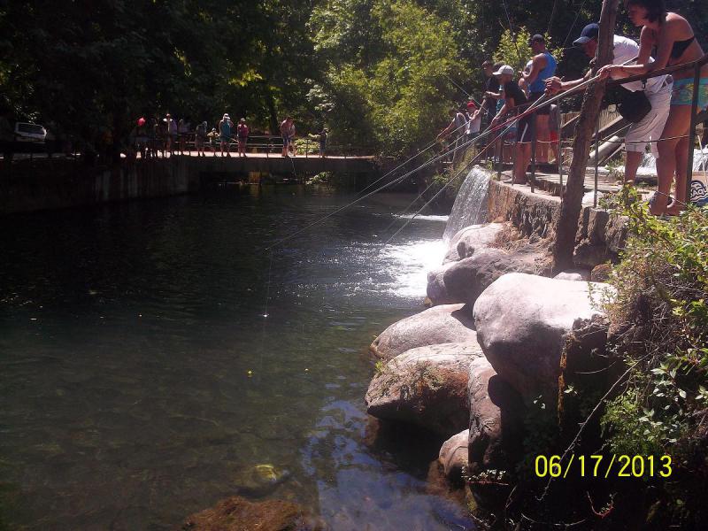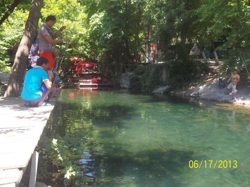 Собрался по горящей, спиннинг телескоп 2.10, вертушки и твистеры. У отеля охрана часто разворачивала, но днём успел пару выходов: первый заброс — мощный удар и откус, потом реализовал рыбу похожую на скумбрию, остальное снимали хвостами твистеров. Кормил мелочь хлебом, туча под ногами. На платнике с форелью спиннинг сделал день: на вертушку ловил быстрее всех, у местных снасти грубые, поплавки из пробок, тесто, контраст заметен