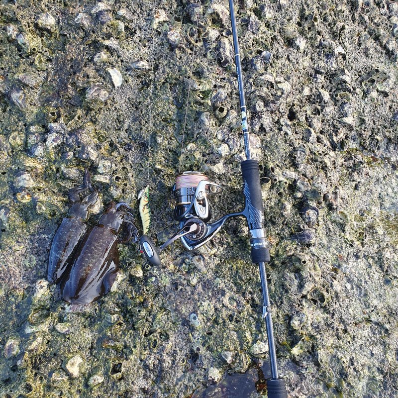 Практически каждый день по часу целенаправленно ловил каракатицу, остальное время микроджиг и бомбарда. Пилькера выключил — ни саргана, ни ставриды рядом. Работали эги 2–2.2, на 3–3.5 тишина. Снасти тревел: Xesta 69 и тайвок эджинг до 30 г. По приманкам — мегабас, ксеста, флейты на бомбарду. В микре шли окуни, «ящероголовые», местные «окуни», скарпены. Плетня 0.6–1 PE, флюр 1.65–3 мм. Приливы и скользкие камни диктуют ритм, в первые дни натёр ноги песком в обуви. Выводы простые: нужен второй тревел 50–70 г и отдельная пара обуви. Местные ставят 2–3 спина, живца берут тут же и на тяжёлые донки с моно 0.35–0.5 кормят придонных