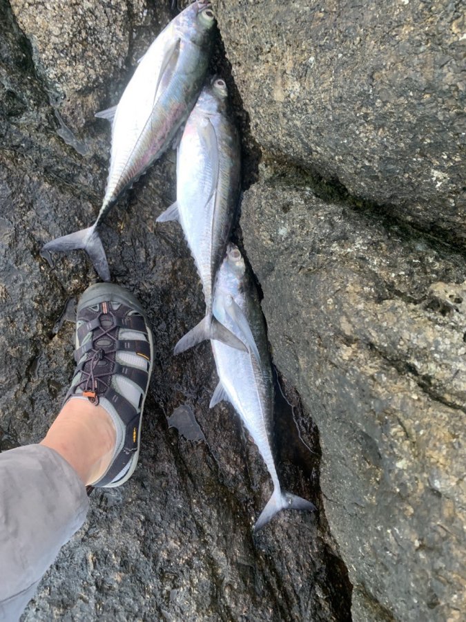 Февраль выжигал: в 7 утра уже за 30, к вечеру камни как печь. Ловил только на рассвете и в сумерках. Ханкены 1–3 кг исправно, окно 20–30 минут. Помоны до 2 кг то в темноте, то ближе к восьми, несистемно. Были срезы, похожи на баракуду. 100% метал-джиг. Тайцев с донками и «мышами» стало много, часто перебрасывают. Поищу новые камни потише