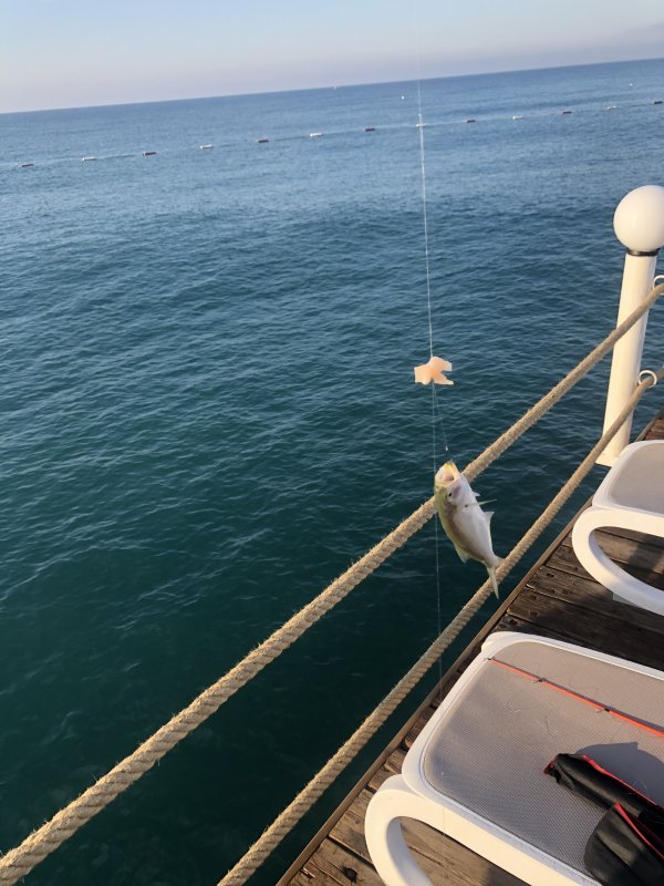 Отдыхал в конце мая. С пирса охрана не пускала, извернулся: сначала ловил на леску, потом ходил на Аксу махами 7-9 м. Питание рыбы — хлебом у пирса, подтягивалась и селёдка. Полицейский сначала развернул, потом договорились через переводчик, помогла вяленая вобла. С 5:00 до 7:00 приходил, кормил и ловил. Поплавок пошёл лучше фидера. В отеле повар жарил 5-10 штук, остальное забирал. Жалею, что не взял спиннинг на устье, хищник там чудил