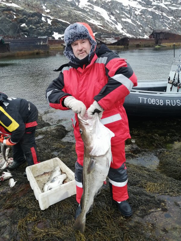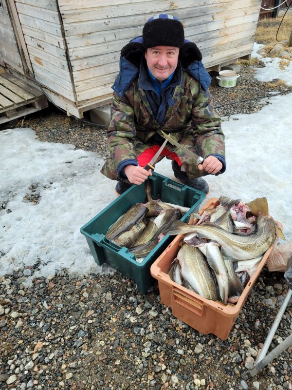 24-25 апреля, погода отличная. На троих около 200 кг трески, всё влезло в 4.5 ящика. По трофею один крупный экземпляр за десятку без точного взвеса. Первый день работали на Сетке, второй на Сундуках. В массе размер 3-4 кг. Итогом довольны, рыба ровная