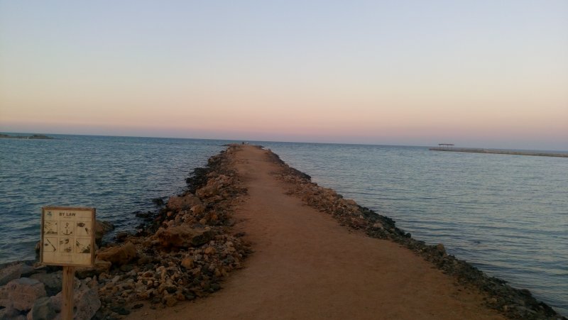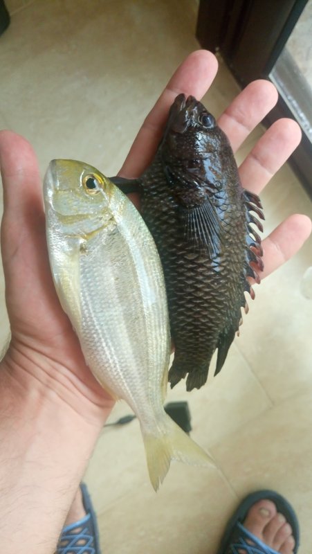 Отдых плюс рыбалка. С берега донка с тремя поводками, пробовал кальмара, креветку, курицу и говядину. Дно камни и кораллы, поэтому аккуратность решает: тонкие палки выгибаются, рыба обвивается, сходов много. Дропшот давал чувствительность, но и обрывов насыпал. На нашем пирсе у кромки глубина около трёх метров, прилив и штиль включали короткие «раздачи» у берега, но в основном размер скромный. Пару крупных видели — пронеслись стаей, воблеры их не уговорили. Вывод простой: день на день не приходится, но поковыряться есть где