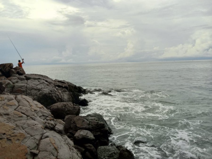 Через пять минут пришёл дождь с грозой, пришлось складывать палки горизонтально и уходить к берегу. Промокли насквозь, спас только непромокаемый рюкзак. Вечером ещё сходил на камни с берега — местных на точке было много, но все пустые. Такая Бали тоже бывает: можно честно отработать день на воде и остаться с нулём, если погода ломает план раньше рыбы.