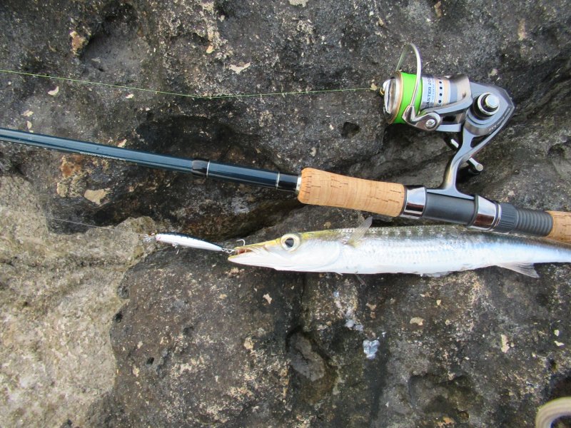 В Айя-Напу прилетел вечером, а утром сразу ушёл за пещеры на восточной окраине. От отеля туда минут пятнадцать пешком. С собой был travel 2.4 до 28 грамм, двухтысячник, шнур 0.13, несколько минох, поппер и микроджиг. Рыбачить начал около шести. Первая 7-сантиметровая минноха Yo-Zuri сработала минут через десять: барракудка, потом ещё несколько поклёвок и четыре рыбы за короткий выход, пока стая держалась у берега.