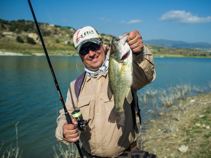 Здесь получился очень чистый и понятный день по кипрскому бассу. Прозрачная вода, светлый берег, воблерная подача без спешки, и рыба отвечает. Серия небольшая, но сильная: есть хороший басс в руках, есть вода и есть ощущение, что точка сработала как надо.