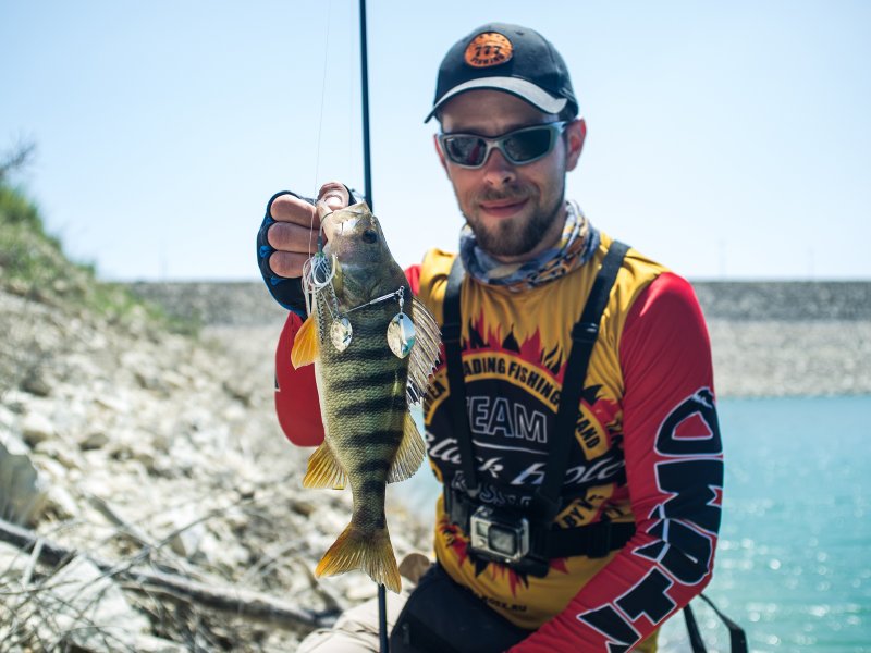В этой карточке кипрская пресноводка уже совсем без лишнего фона: чистая вода, светлый берег, несколько нормальных бассов и рабочая приманка. По фото видно, что день был спокойный, но не пустой. Рыба отзывалась, причём не только мелочь, и по размеру уже можно было получать удовольствие от вываживания.