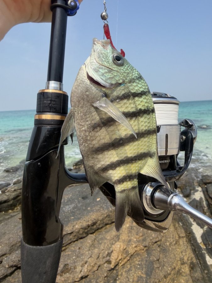 В Паттайе это был короткий выход без лишней возни: встали на камнях и работали по крупной рыбе, с прицелом перебить прошлый GT на 11 кг. Такие рыбалки могут молчать долго, зато один контакт всё меняет.