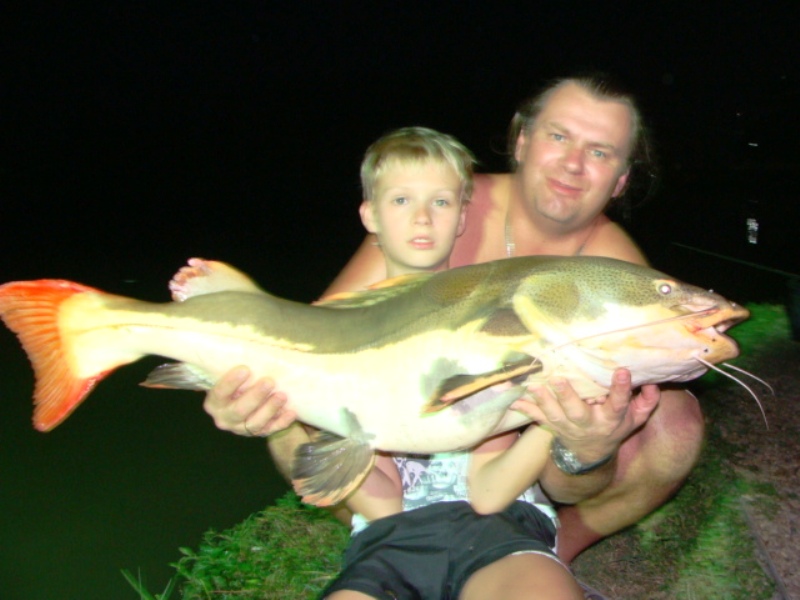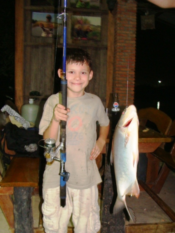 По фото лучше всего читается семейный формат такого выезда: большая рыба, дети рядом, свет то дневной, то уже вечерний, и всё равно вокруг одного и того же напряжения, когда очередную тяжёлую рыбу надо аккуратно довести до мата. Это не про красоту места, а про постоянный контакт с очень сильной рыбой.