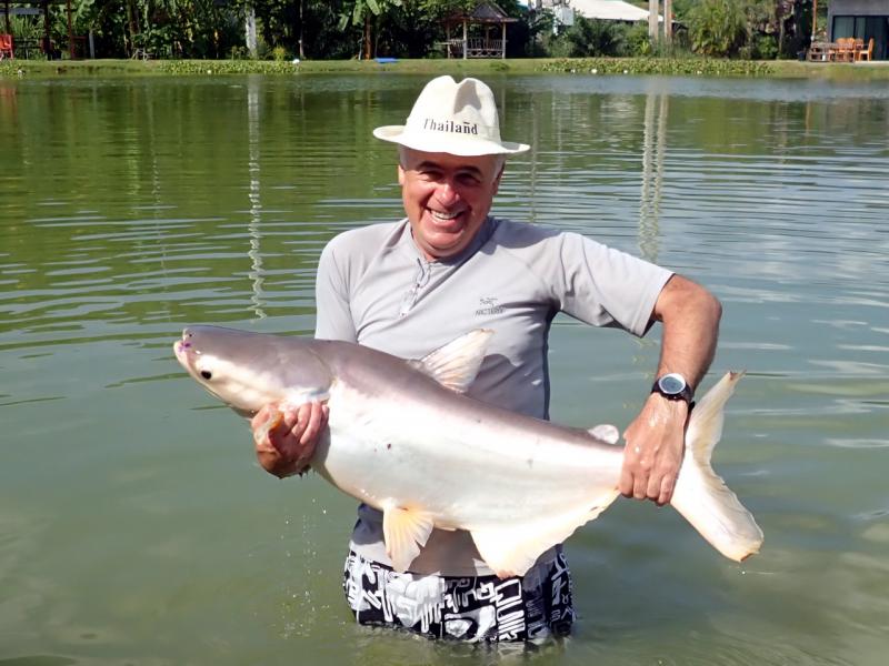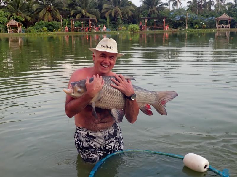 Зато потом оторвался на платниках. На первом пруду краснохвостые сомы 4-7 кг, пираньи, тиляпия и небольшой меконг. На Чалонге уже целенаправленно ловили крупных меконгов: поплавок, хлеб, прикорм в толще, и рыба за двадцать кило реально приходила. После такого дня руки просто отваливаются, но по тайскому крупняку это был один из самых понятных и полезных выездов.