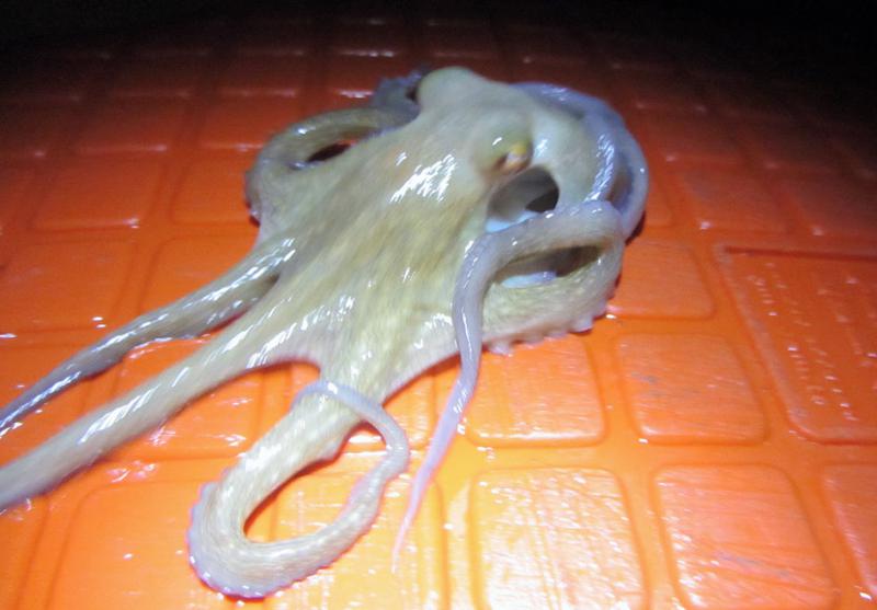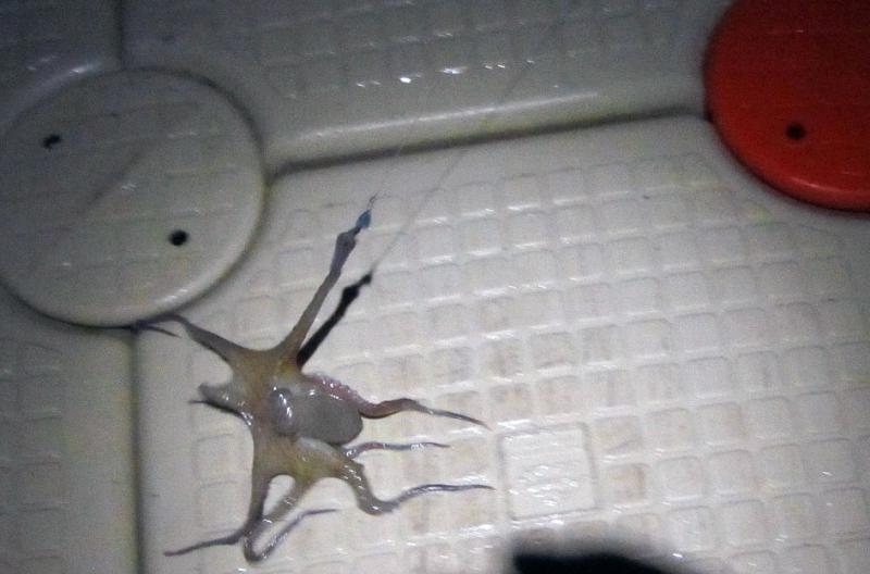 Основной шанс давал короткий предрассветный выход на воблеры. На 56-й Ridge поймал рыбу-ящерицу, потом барракуду, ещё были поклёвки и сходы на тех же 10-15 минутах до нормального света. Всё, что крупнее, молчало. Днём и вечером выручала микруха: мелочь, небольшой осьминог и под занавес красно-полосатая рыба-белка.