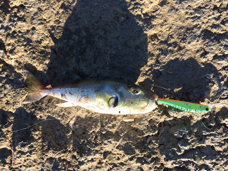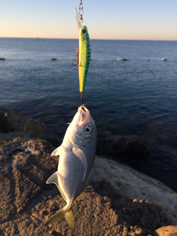 В Конаклах быстро выяснилось, что пляж для спиннинга почти мёртвый: мелко, камни торчат под самой поверхностью, а рыбы там мало. Рабочей оказалась дальняя каменная насыпь, где с конца пирса можно бросать в море на глубину больше десяти метров. Утреннее окно короткое, у меня рыба включалась с 6:30 и жила примерно до восьми, дальше шла только мелочь и холостые тычки.