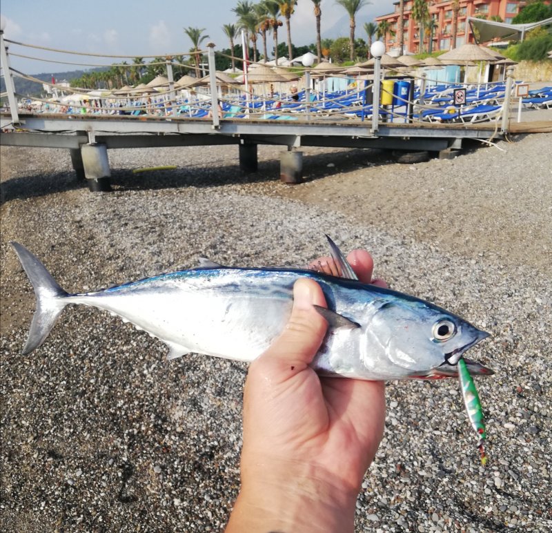 В Кемере после первых дней стало понятнее, как здесь живёт берег. Один из местных турок подсказал простую вещь: не сворачиваться слишком рано, потому что рыба нередко подходит ближе только к 10-11 утра. После этого картинка реально поменялась: почти каждый день добавлялся какой-то новый вид, попадалась игла, а однажды на булер влетел паламут примерно на 400 грамм и для своего размера дал очень бодрое сопротивление.