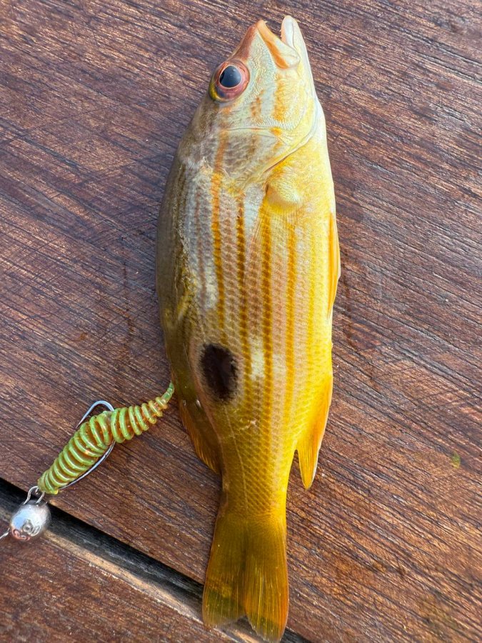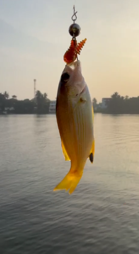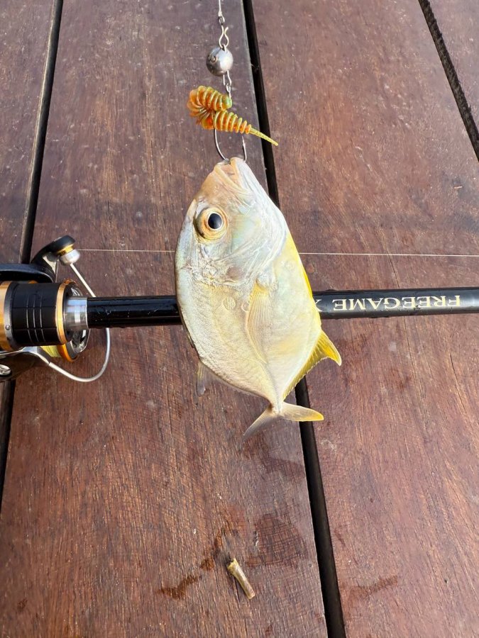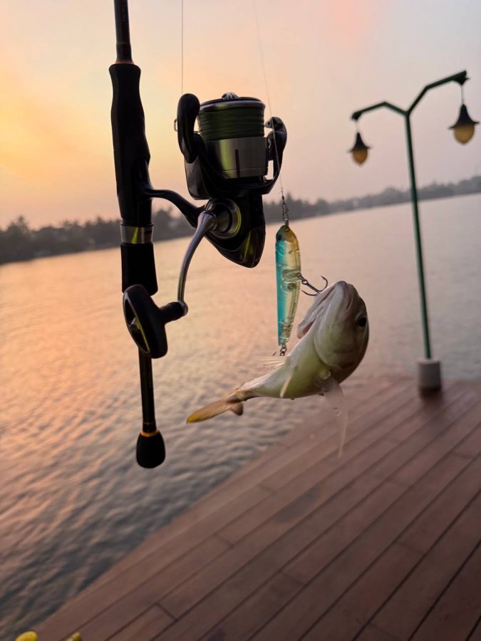 На этот выезд я сознательно строил рыбалку на Шри-Ланке с берега вокруг микроджига и лёгкого железа. По снастям взял Shimano Free Game XT S76ULS и Kosadaka Brave, катушки Daiwa Lexa LT 23 2500 и Revros LT 1000-XH, по тонкому комплекту поставил ProJig UltraLight 0.2 PE и флюр YGK 3.5 lb. Самым рабочим силиконом неожиданно стала обычная Танта в размере 1 дюйм и в цвете машинного масла. Как только пытался укрупняться до трёх дюймов, уходить в другие формы или перестраиваться на более объёмную резину, поклёвки ещё оставались, но реализация рассыпалась. На пилькерах, кастмастерах и волкерах тоже ловилось, но уже в другом ритме и чаще на втором спиннинге.
