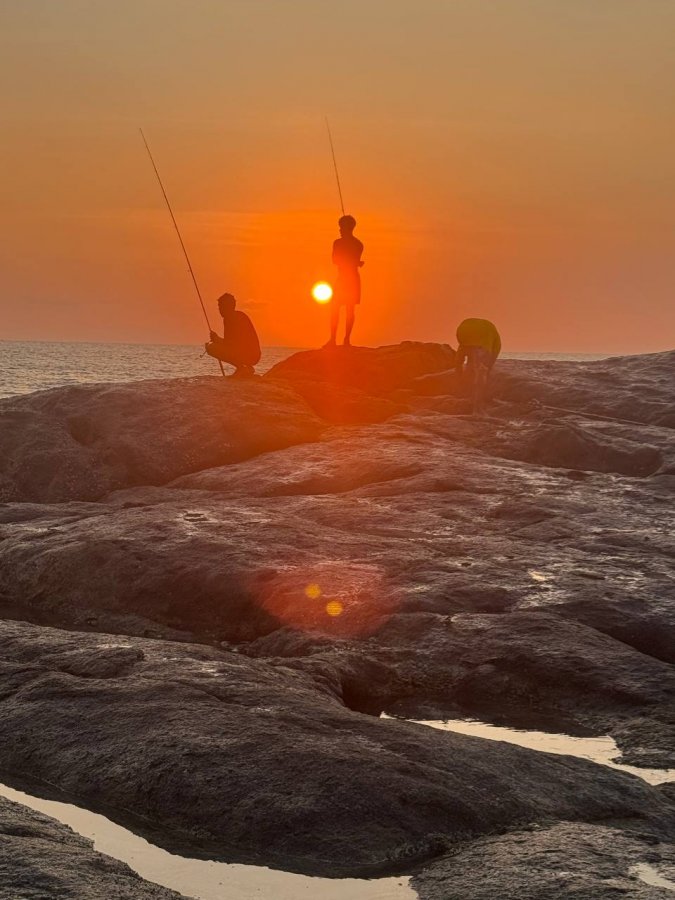 По времени картина сложилась очень чёткая. Утром выходил примерно с шести до восьми, вечером с шести и максимум до десяти, но настоящий жор чаще укладывался до семи вечера. После этого рыба как будто ложилась и переставала отзываться даже на проверенные подачи. На спокойной воде особенно хорошо было видно, как она гуляет и бьёт малька. Рыбу почти всю отпускал, но каждый второй местный просил не отпускать улов и прибегал с пакетом или канистрой сразу после первой рыбы. Отдельно запомнилось, как над дюймовым силиконом почти все сначала смеялись, а потом просили подержать приманку, спиннинг или даже сделать пару забросов. Этот выезд ещё раз показал мне простую вещь: в Бентоте выигрывает не тот, кто тащит самый мощный набор, а тот, кто попадает в окно, держит темп и не ленится лазить по камням ради правильной точки.