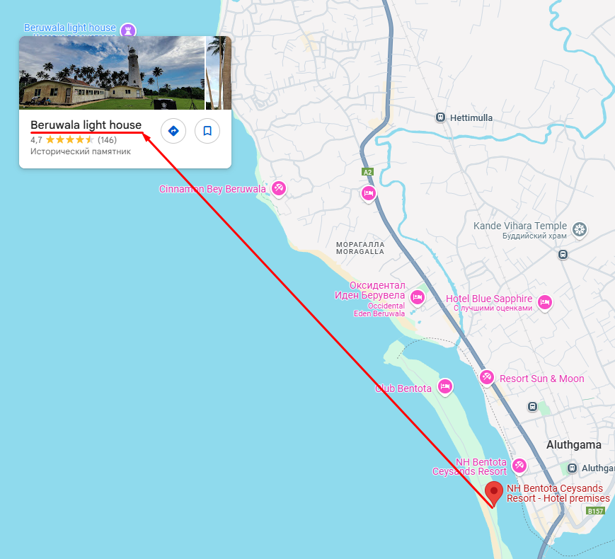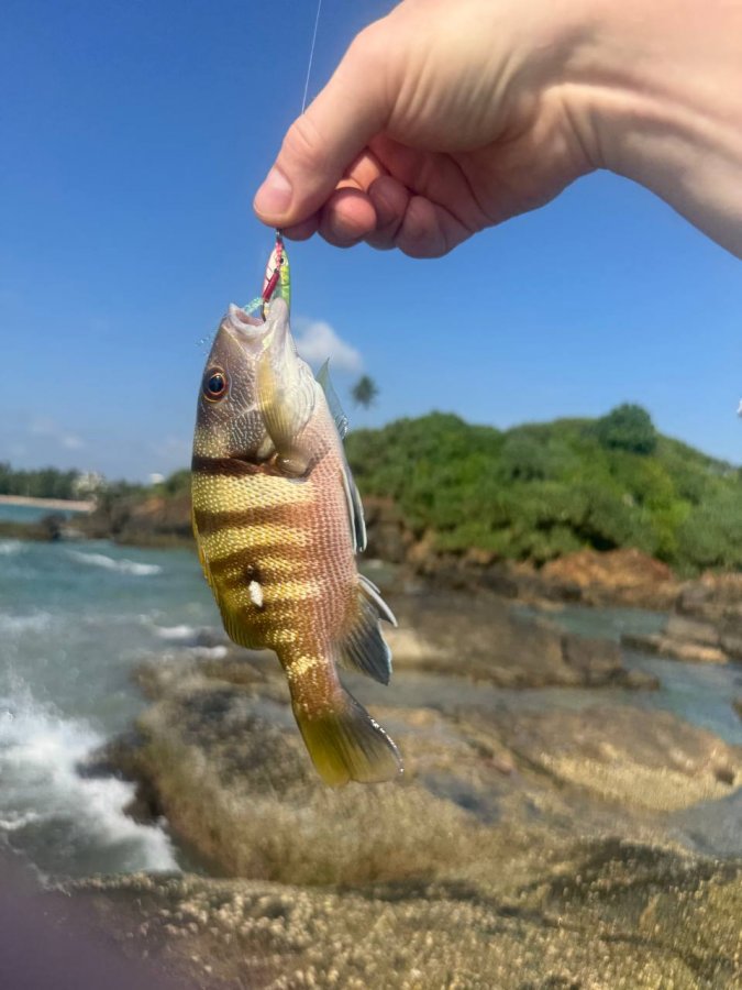 Ловить приходилось и в океане, и на реке. На реке чаще отвечали каранксы и редфиш, в океане влетали груперы, дорадо и мелкая барракуда. Из точек лучше всего запомнились Endry stone BLR, карман севернее этих камней, место слияния реки с океаном и остров с маяком Beruwala light house. На камнях приходилось учитывать прилив и отлив: днём проходишь почти всухую, а вечером возвращаешься уже по пояс в воде, держа снасть над головой. На маяке можно было работать почти весь день, но самый злой сектор был на южных камнях, где и солнце, и брызги шли по полной. С хорошим рюкзаком и нормальной обувью это место прямо раскрывается, без них быстро превращается в наказание.