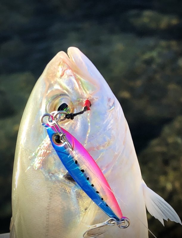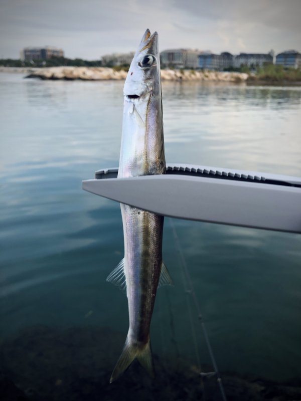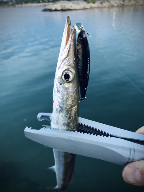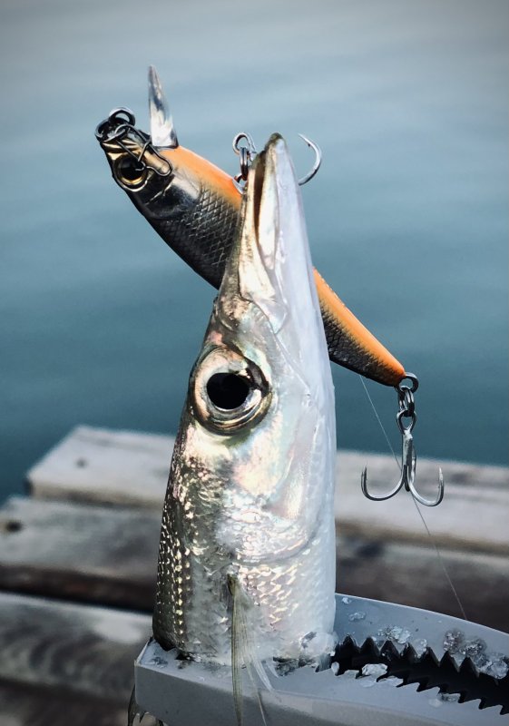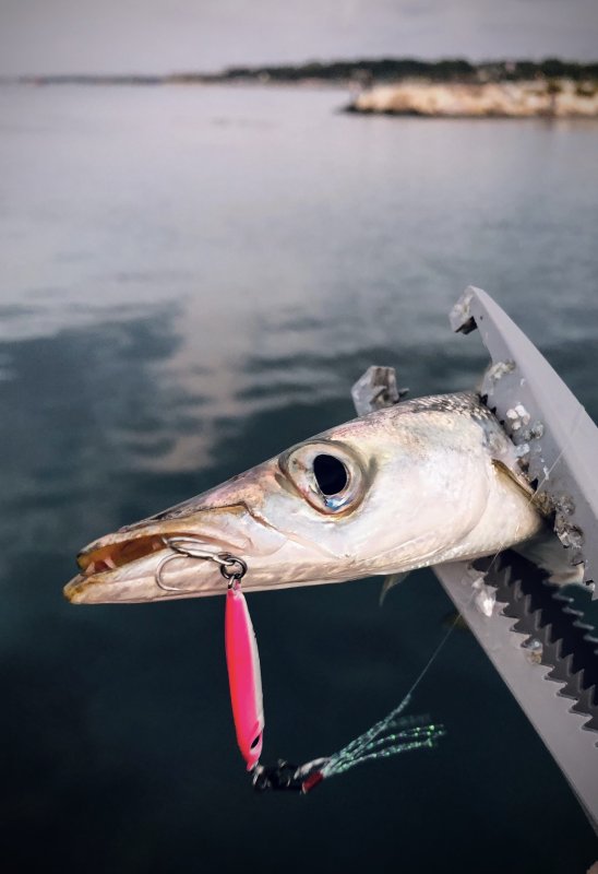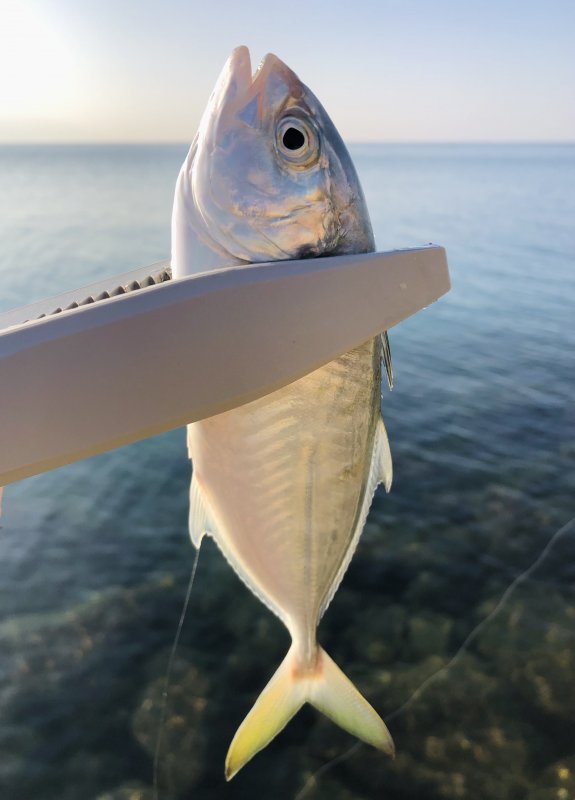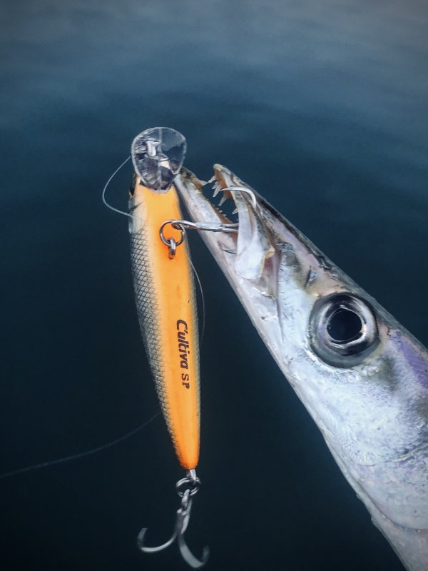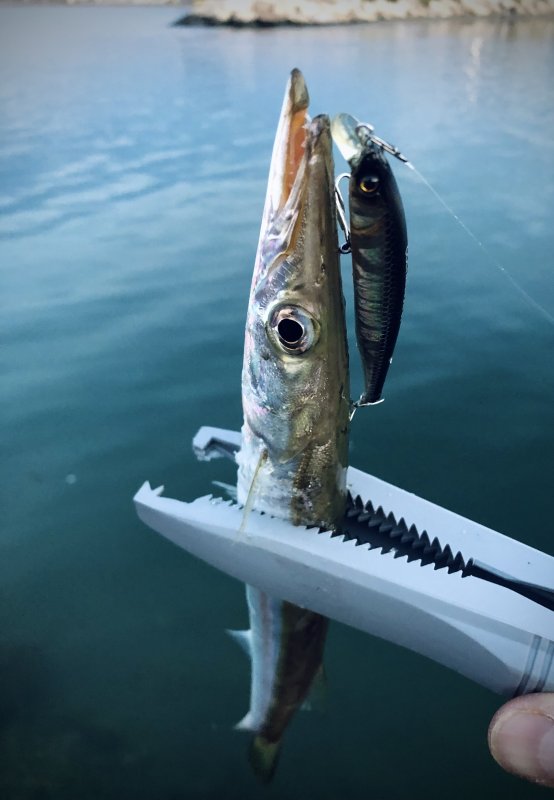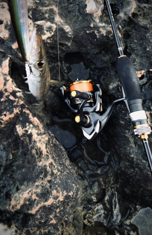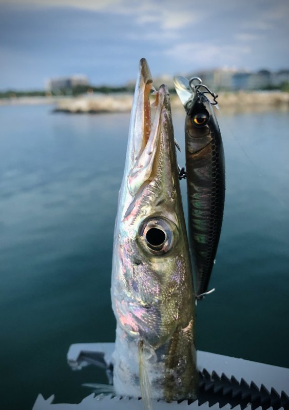 В первый день на море пилькеры и воблеры молчали, а резина включилась уже после подъема солнца. Рыба брала у дна перед грядой прибрежных камней, за утро собрал десяток поклевок, но реализации было мало, плюс ушло полпачки резины и несколько булеров на зацепах. На следующий день успел на впадение затемно, поставил Daiwa TD Minnow 90SP и на первом же забросе взял баракуду.